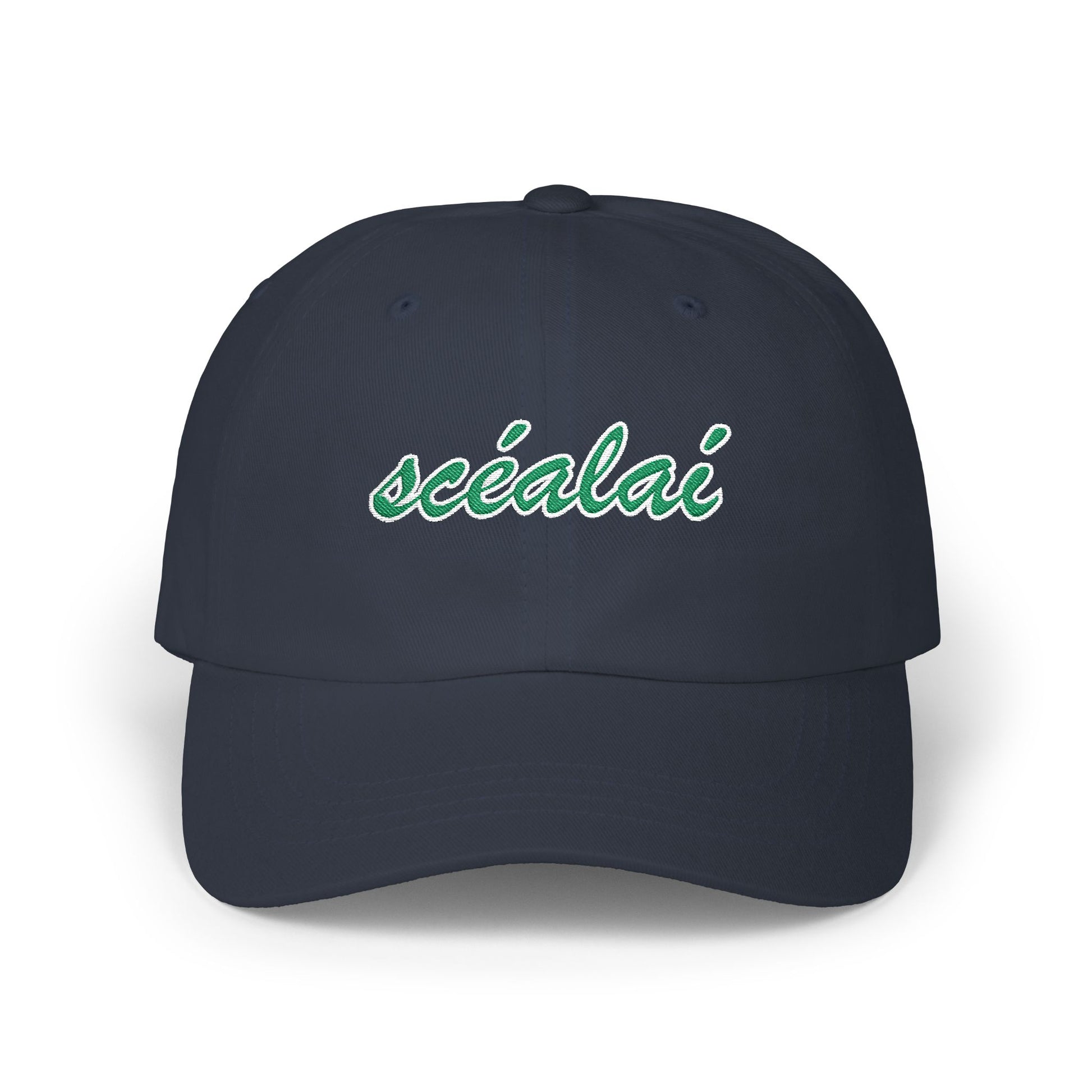 Carry your stories in style. The “scéalaí” cap celebrates the Irish word for storyteller, embroidered in green and white on classic navy. A nod to heritage and the gift of words — perfect for Gaeilge lovers, heritage keepers, and everyday style.